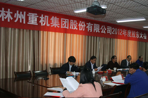 2013年4月16日下午14時,林州重機集團股份有限公司2012年度股東大會在公司一樓會議室以現場投票和網絡投票相結合的方式召開,參加本次股東大會的股東及股東代表共24人,代表公司股份328,572,401股,占公司有表決權股份總數的61.0356%,其中,現場出席會議的股東及股東代表14人,代表股份328,309,380 股,占公司有表決權股份總數的60.9867%;通過網絡投票方式參加會議的股東10人,代表股份263,021股,占公司有表決權股份總數的0.0489%。