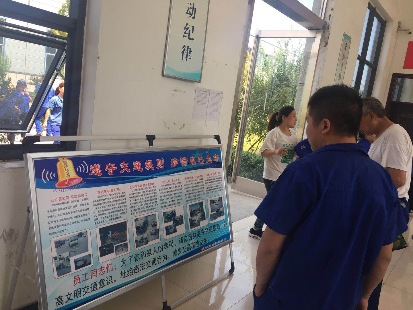 其次,公司加大宣傳力度。在公司門口、考勤室等地擺放交通安全宣傳版面,懸掛交通安全條幅,并不間斷地播放交通宣傳教育口號,提醒廣大員工上下班時刻注意交通安全,提高交通安全意識,自覺遵守交通規則。同時,要求各單位利用班前會、工作例會、車間版面及微信平臺等多種形式,對本單位員工進行交通安全教育,做到交通安全教育工作常態化、制度化。
