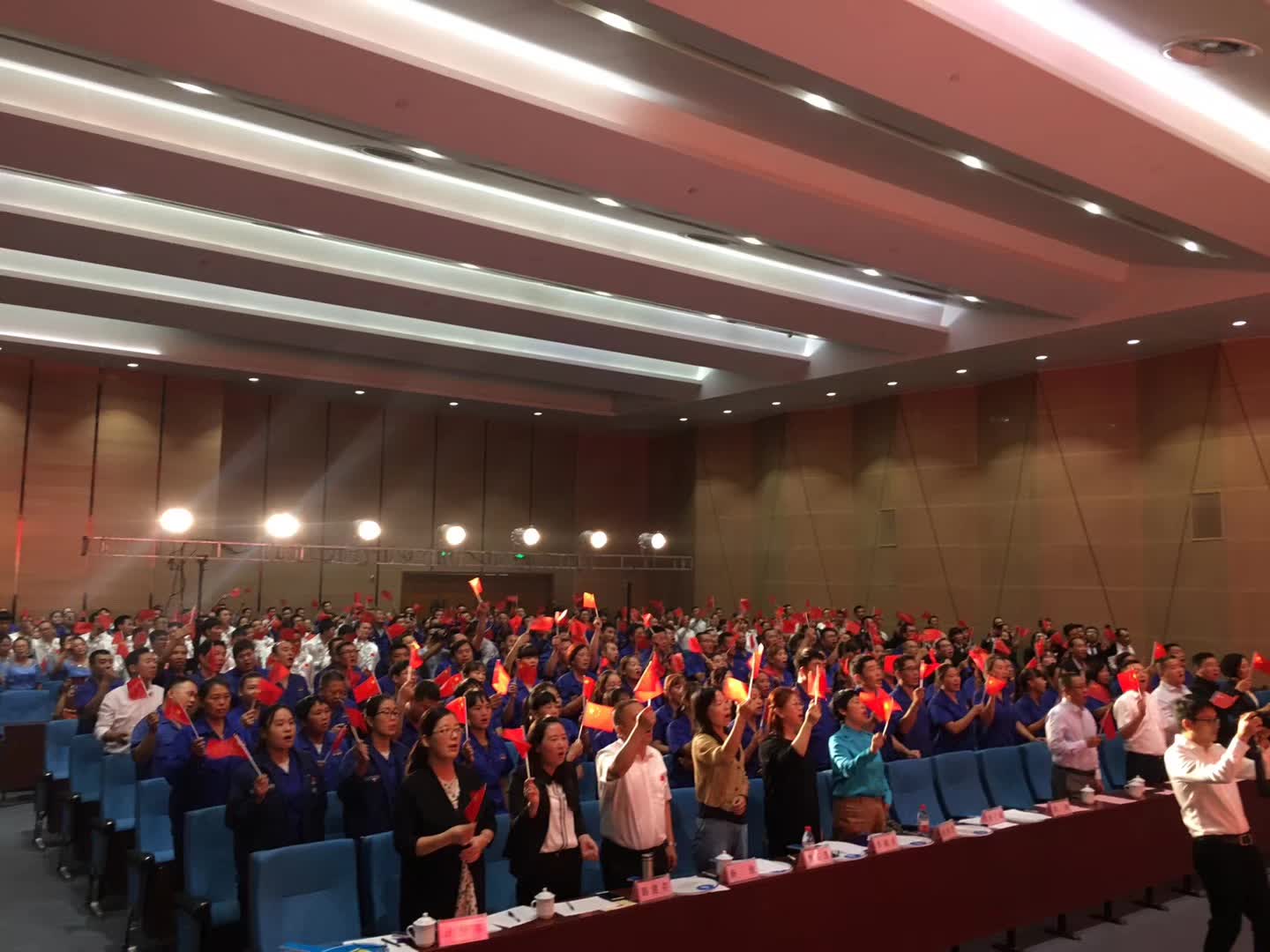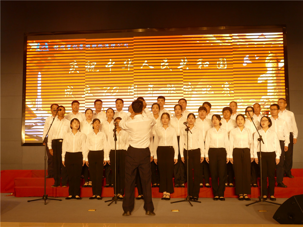 活動在全體合唱《歌唱祖國》的歌聲中達到高潮。集團公司主要領導登臺同全場員工舞動起鮮艷的五星紅旗,共同歌唱祖國,歌唱美好的新時代。