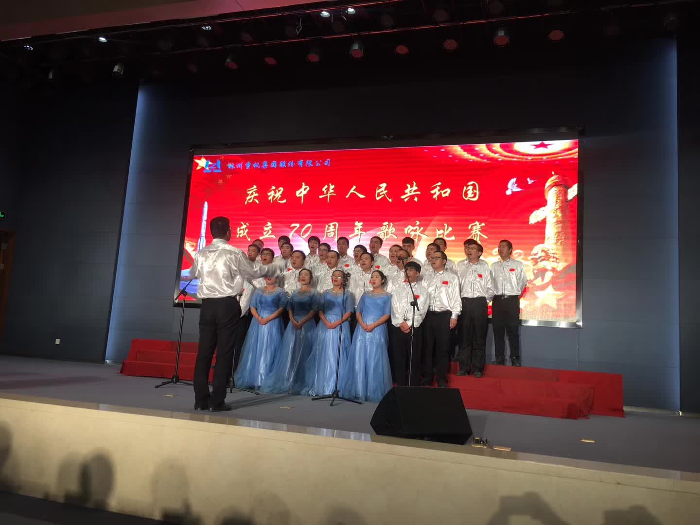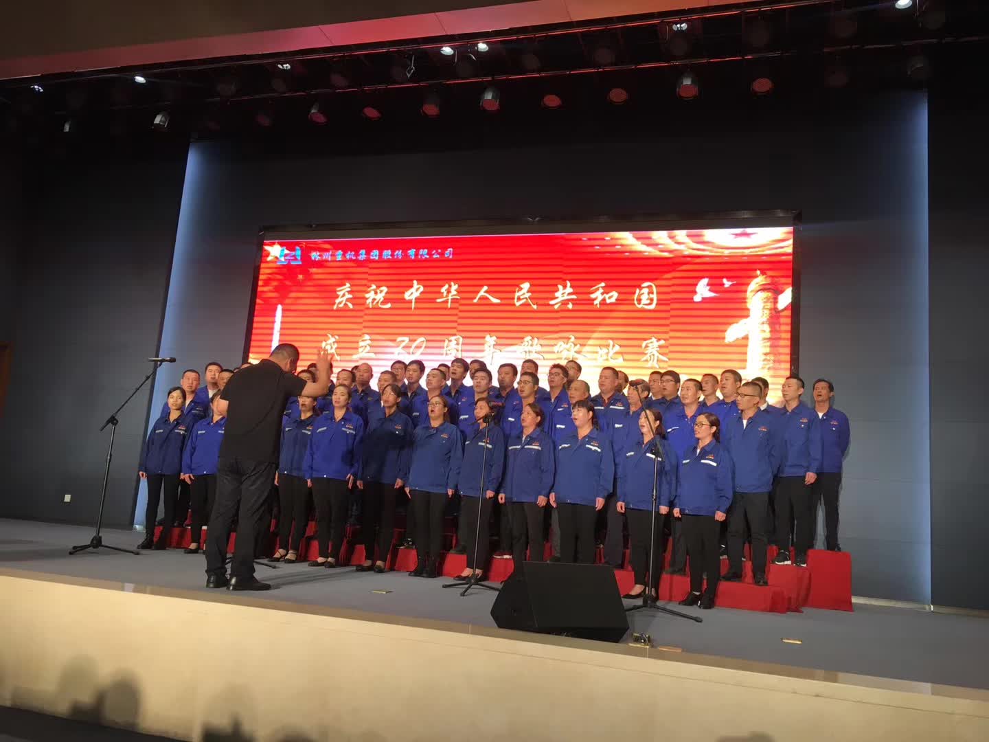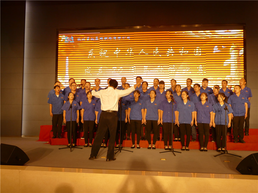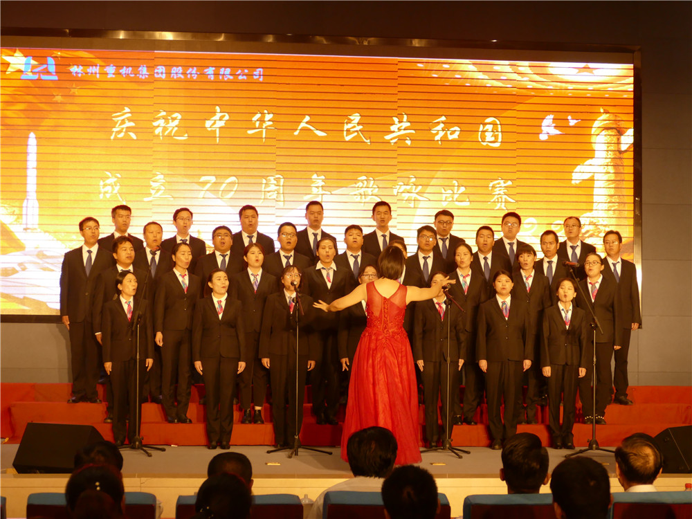 2019年9月29日下午2時,林州重機多功能廳內燈光璀璨、紅旗招展。林州重機集團慶祝中華人民共和國成立70周年歌詠比賽在此隆重舉行。集團公司黨委書記、董事長郭現生,董事、總經理郭釧等高管和十二支代表隊共400余人歡聚一堂,通過美好的歌聲,獻禮祖國的70華誕,獻禮奮進的新時代。